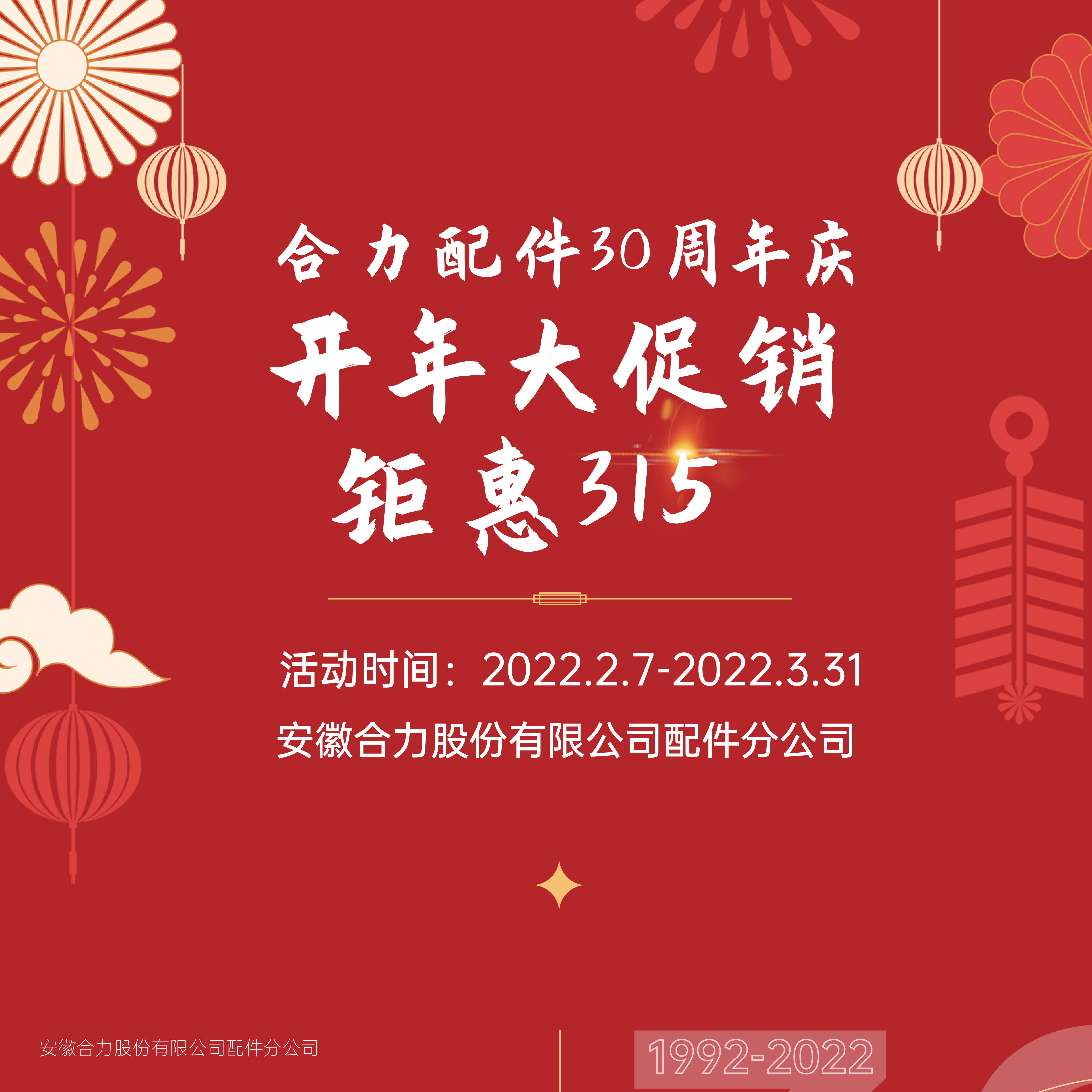 bv宝威体育(中国)有限公司官方网站配件三十周年庆 | 开年大促销 钜惠315
